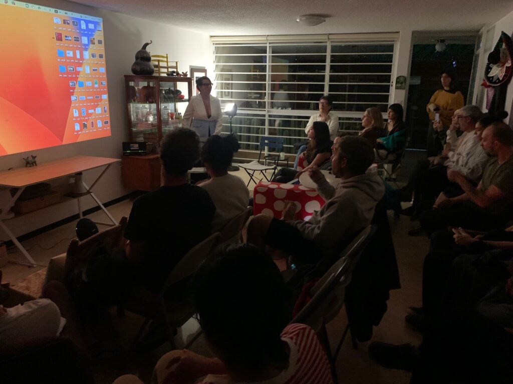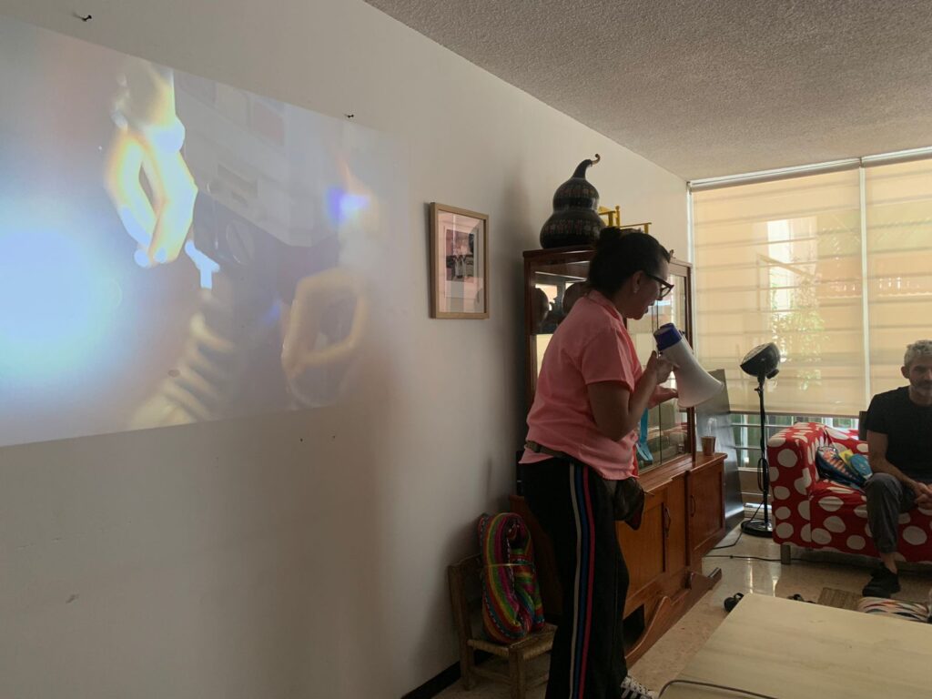 Durante su residencia en Solar Dafna realizó la proyección de un ciclo de cine documental colombiano, 2 talleres para infancias relacionados con la animación y una investigación cartográfica de la Colonia Escandón que dio como resultado un mapa.
