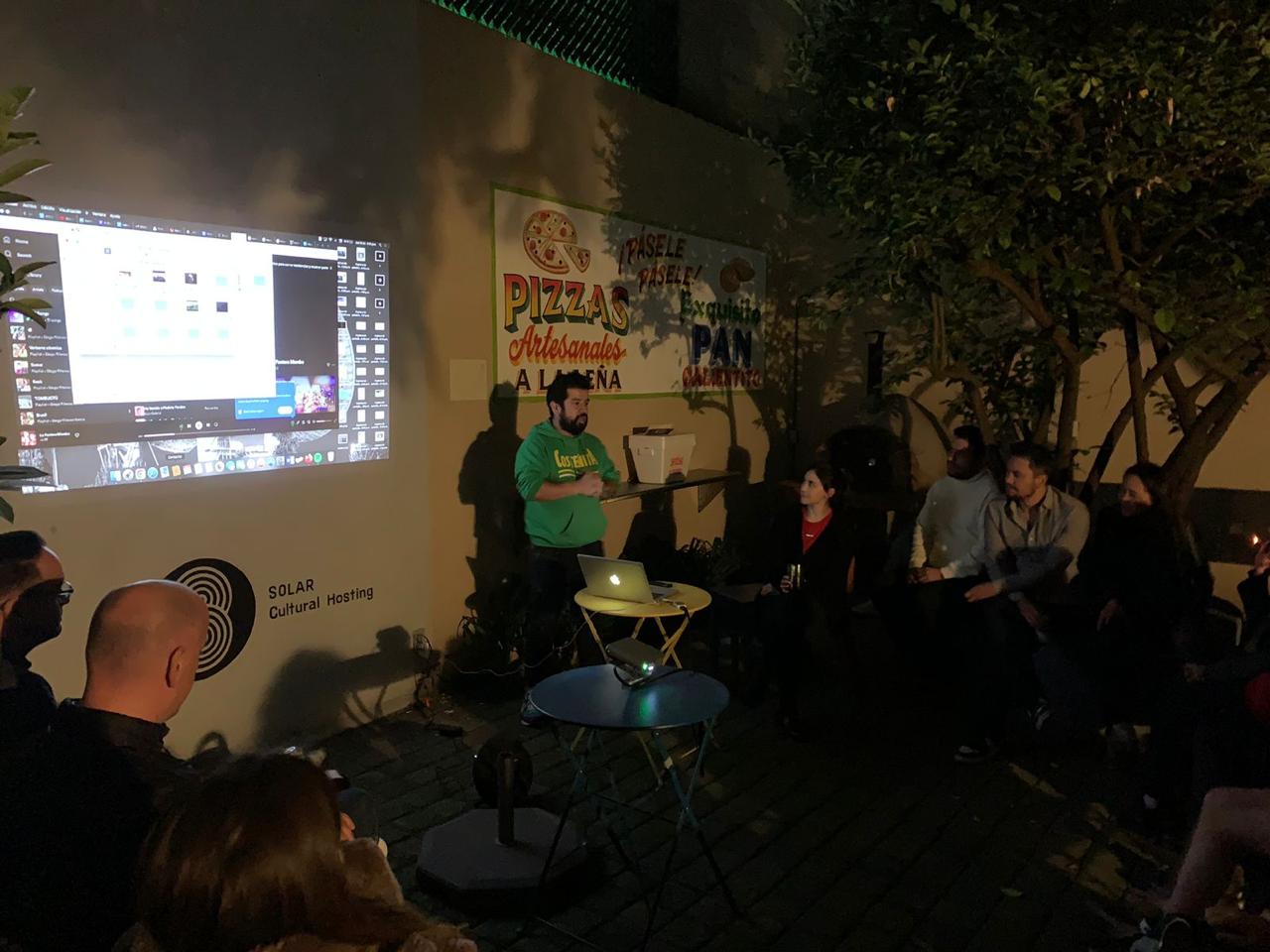 Durante su residencia en Solar realizó un taller de modelado en plastilina en colaboración con la galería de arte y encuentros Banda Municipal y dos presentaciones públicas, una de ellas con el apoyo de Le Cinéma IFAL en la que se proyectó una selección de piezas del colectivo de creación audiovisual CALDERÓN & PIÑEROS y la segunda, una presentación pública de su portafolio y procesos, como parte del evento final de cierre de residencia en el jardín de Solar.